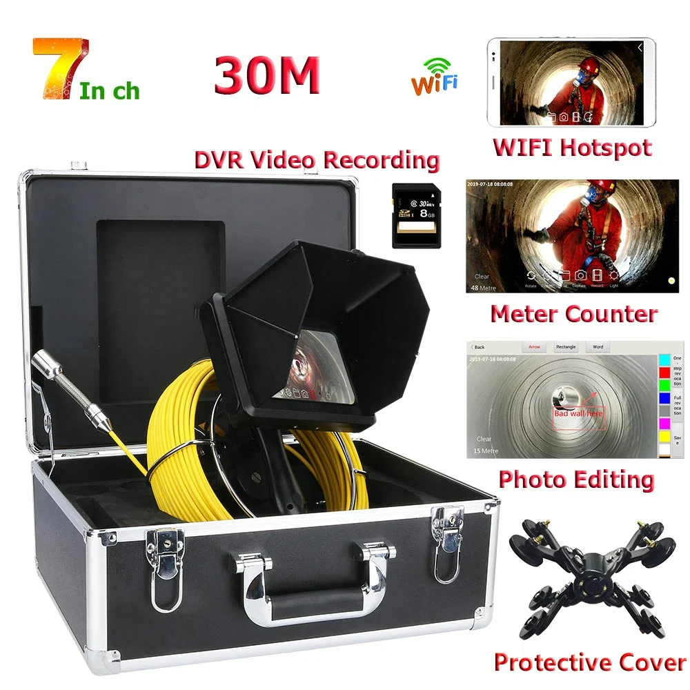 BEST QUALITY Handheld Industrial Pipe Sewer Inspection Video Camera with Meter Counter / DVR Video recording / W