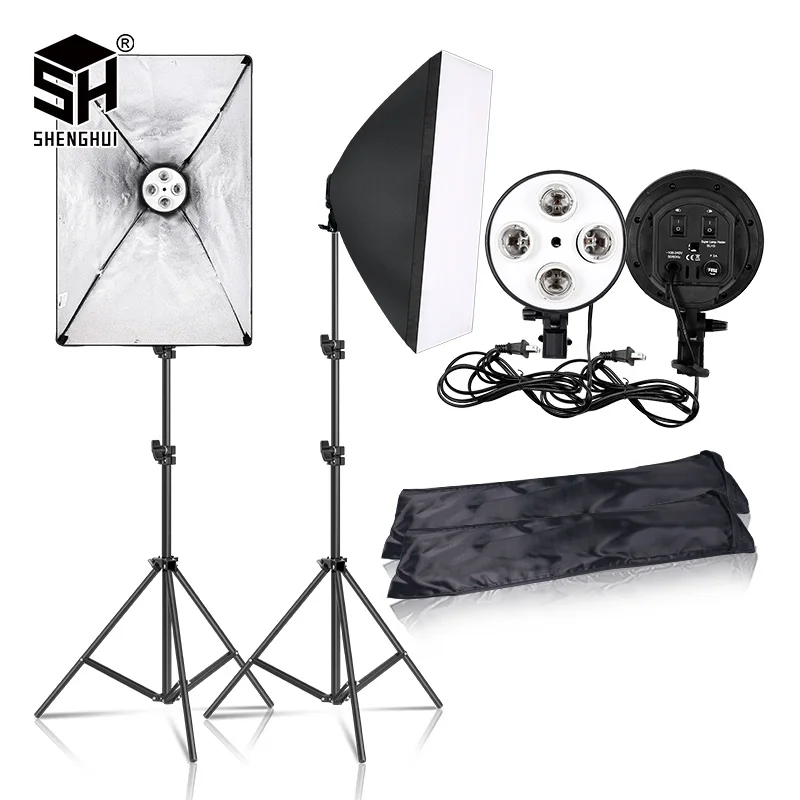 Photography 50x70CM Lighting Four Lamp Softbox Kit With E27 Base Holder Soft Box Camera Accessories