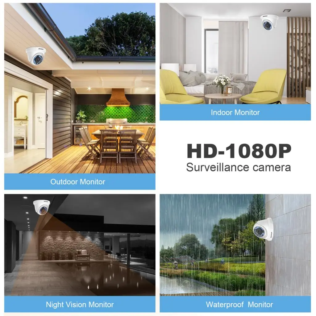 BEST SELLER ANNKE 4pcs C51BT 1080P HD-TVI Security Camera 4pcs Dome Kit IP66 Weatherproof Housing And 66ft Supe