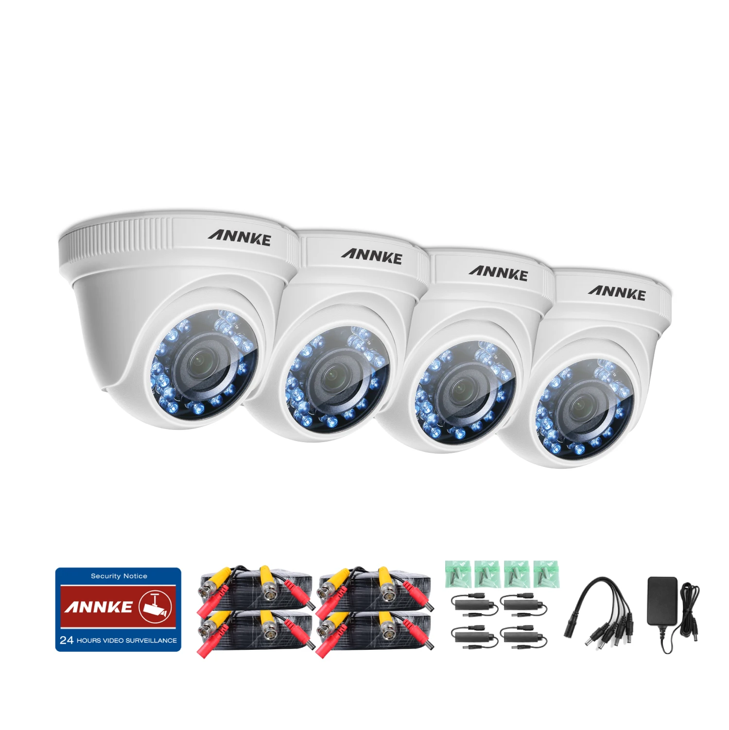 ANNKE 4pcs C51BT 1080P HD-TVI Security Camera 4pcs Dome Kit IP66 Weatherproof Housing And 66ft Supe