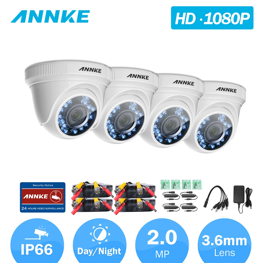 HOT SALE ANNKE 4pcs C51BT 1080P HD-TVI Security Camera 4pcs Dome Kit IP66 Weatherproof Housing And 66ft Supe