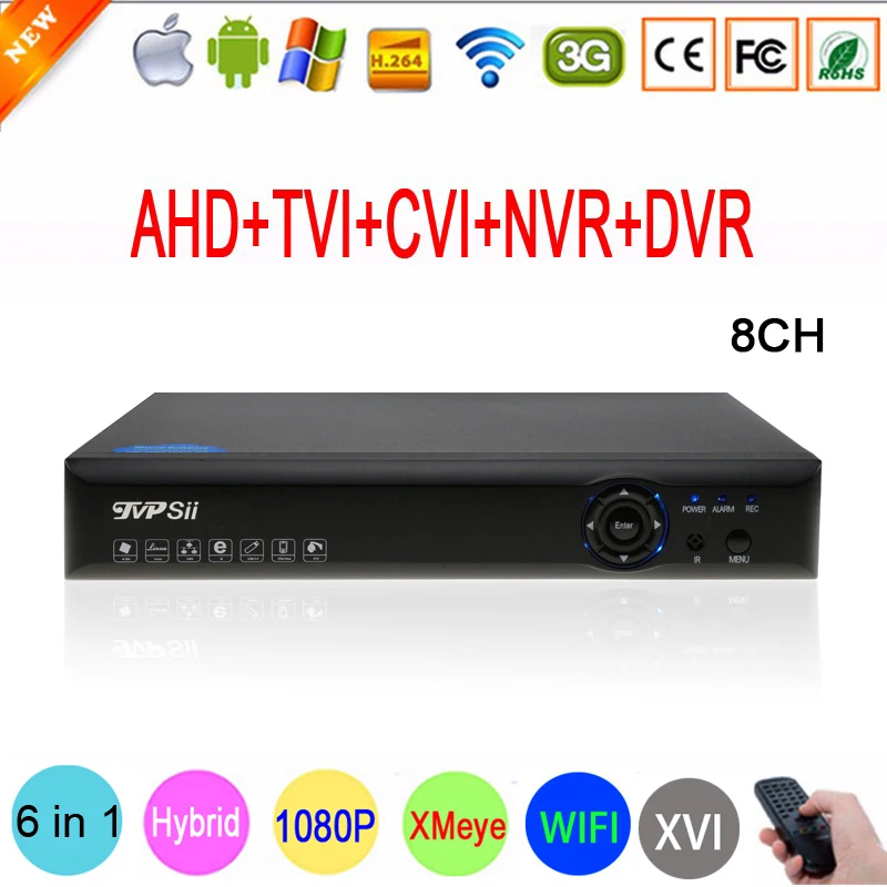 HOT Sale Blue-ray Xmeye Hi3520D 1080P Surveillance Camera 1080N 8 Channel 8CH 6 in 1 Hybrid Coaxial TVI CVI