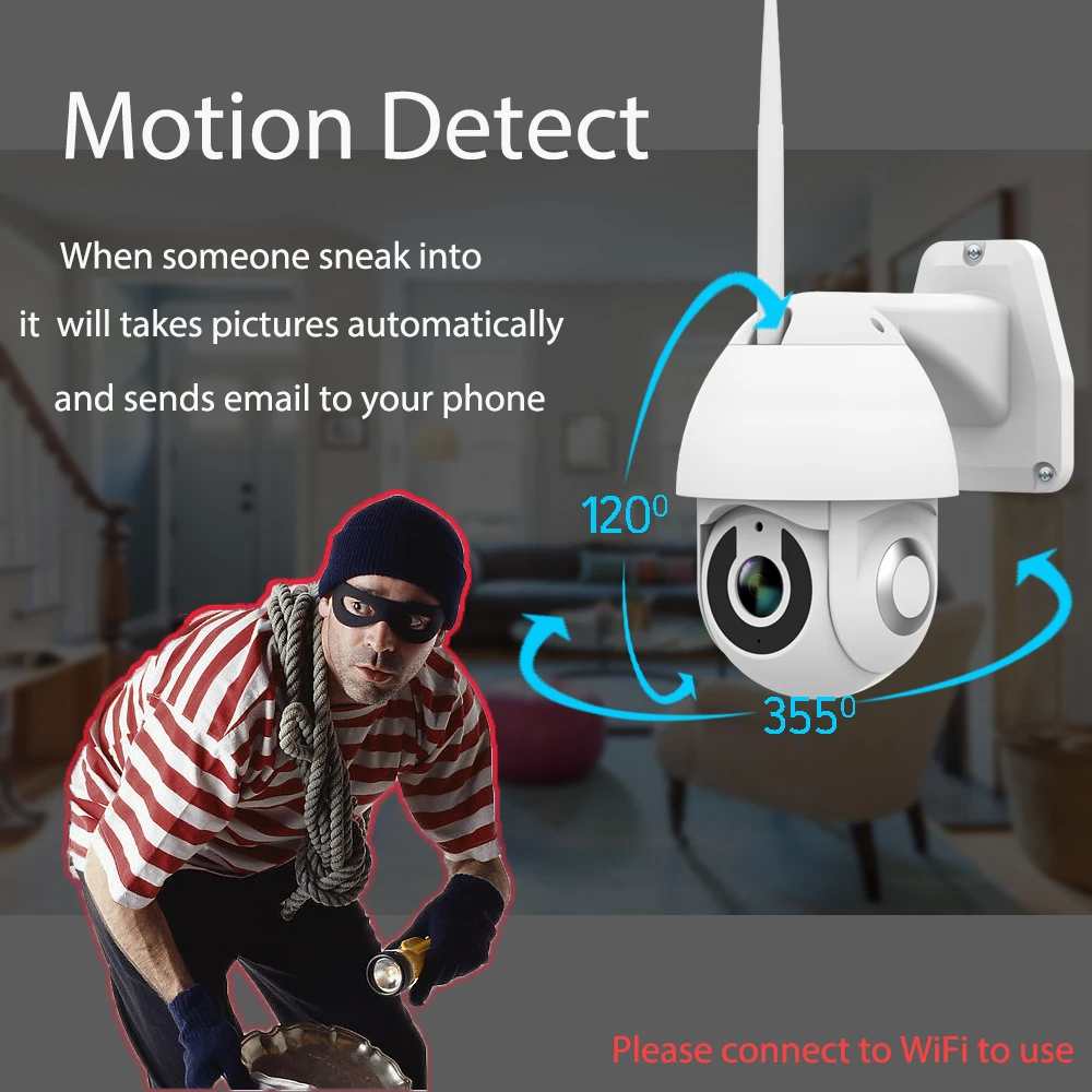 Security Dome Camera 1080P Waterproof Smart Wireless Camera PTZ 360 Motion Sensor Outdoor Dome Came