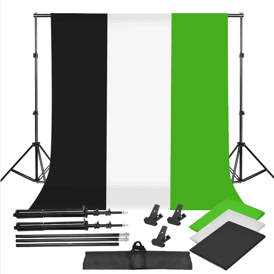 ZUOCHEN Photo Studio Black White Green Backdrop Chroma Key Screen Background Stand Kit